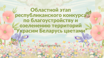 В целях воспитания экологической культуры учащихся через создание и реализацию проектов по озеленению и благоустройству территорий с марта по октябрь 2026 года проводится областной этап республиканского конкурса по благоустройству и озеленению территорий «Украсим Беларусь цветами».